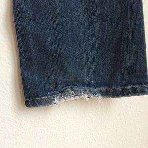 Awesome medium wash 7 bootcut jeans. Some wear on bottom of right leg and loose thread on one pocket (shown in last few pictures). I will repair the pocket thread and then post a new picture. Super cute and flattering!