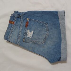 7 for All Mankind Distressed Denim Shorts, Color Blue Size 25