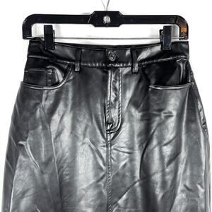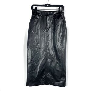 7 for All Mankind Faux Leather Skirt Black Pencil Back Slit Midi Vegan Sz 27
