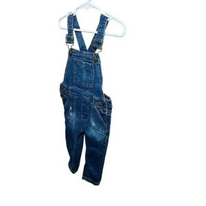 7 for All Mankind Girls Denim Overalls Distressed Skinny Jeans Kids Size 18M EUC