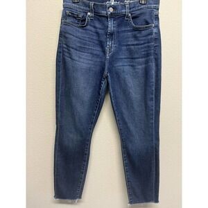 7 for All Mankind High Waist Ankle Gwenevere Jeans Size 30 Raw Hem Med Wash
