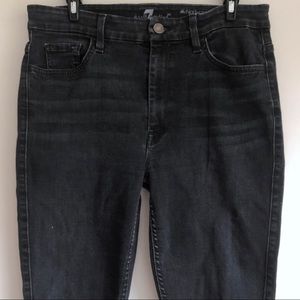 This vintage inspired wash and custom ripped knees gives a worn, distressed / destroy look and utilizes both a rigid, heavyweight denim and a lighter weight stretch denim. Tonal threads and bronze hardware add a feminine feel. Great preowned condition!