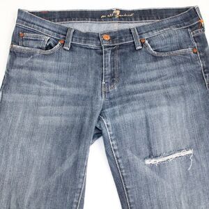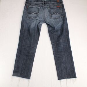 7 for All Mankind Jeans Mens 32x25 Denim Crop Straight Distressed Mid Rise Blue