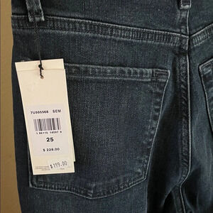 The Megaflare!!! Dark wash high waist with button and zipper closure. Has a bit of stretch.