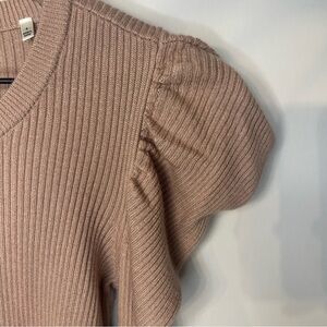 7 for All Mankind Blush Pink Long Sleeve Ribbed Sweater with Puffy Shoulders, Size Small.