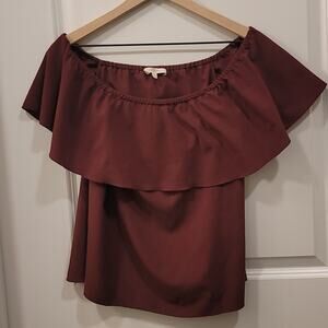 7 for All Mankind Plum Burgundy Off Shoulder Blouse