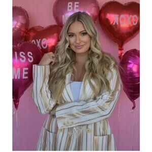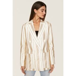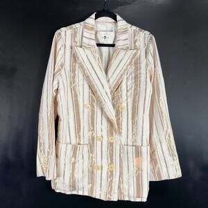 7 for All Mankind Shine Blazer Ivory Gold Stripe Button Front Double Breast Sz L