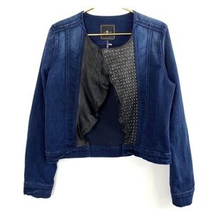 7 for All Mankind Studded Leather Open Front Denim Jacket Blue & Black Size L