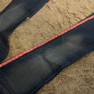 These are so cute and flattering - professionally hemmed with original hem at a 33" inseam for booties/wedge or longer legs. Lightly worn, never washed. Color a little lighter than comes through on photos - I'd say medium vs. dark or light.