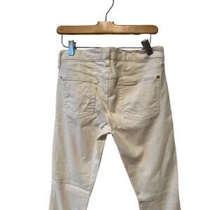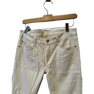7 for All Mankind The Skinny Velveteen Jeans Off White, size 29. Good preowned condition. These special edition jeans are comprised of Cotton rayon spandex blend, mid rise, 5 pocket styling and rose gold hardware. Pair with a cropped sweater this winter season for a great on trend look!