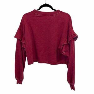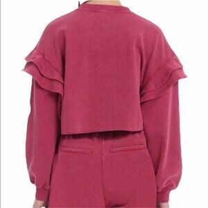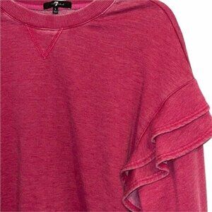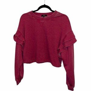7 for All Mankind Women's Sweatshirt Ruffle Shoulder Crop Berry Pink Large NEW