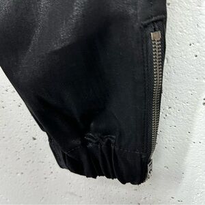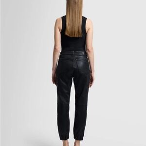 7 for All Mankind size 25 Coated Black Darted Boyfriend Jogger Stretch High Waist Jeans. There is some wax in one hem zipper besides that in very good condition.