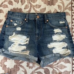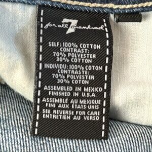 100% cotton. Front and back pockets. Intentionally destroyed areas. Frayed hem. AU5170712A. As the first premium denim brand on the scene, 7 For All Mankind reshaped an industry. With high-quality fabrics and innovative design, the brand changed the perception of denim from a basic to a statement piece. Long beloved by celebrities, stylists