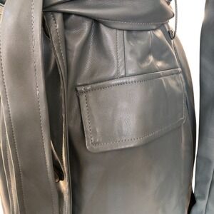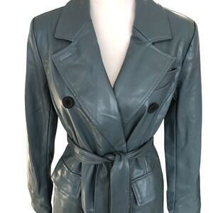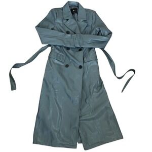 7 for all Mankind Dark Green/Gray Faux Leather Belted Long Line Trench Coat sz S