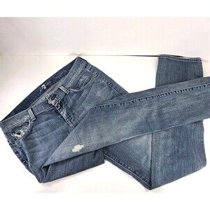 7 for all Mankind Denim Jeans Women's 30 Straight Distressed Med Wash Low USA