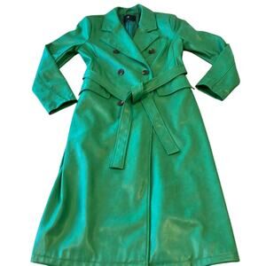 7 for all Mankind Green Faux Leather belted Trench Coat NWOT sz Medium