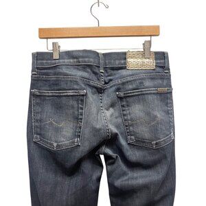 Elevate your wardrobe with these flattering 7 for all Mankind high waist bootcut jeans. The dark wash denim offers a versatile look, perfect for any occasion. Comfortable and stylish, these jeans are designed to make you feel confident and chic. Gently worn, excellent condition!
