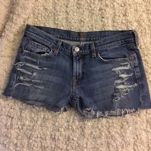 Jean shorts from 7 for all Mankind. These were not bought as shorts but were made into shorts. Very cute. Wish they still fit!