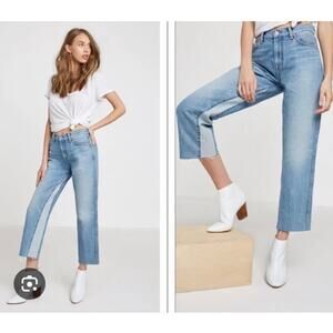 7 for all Mankind Kiki Wide Leg Relaxed Cropped Jeans Medium Wash Size 27 EUC