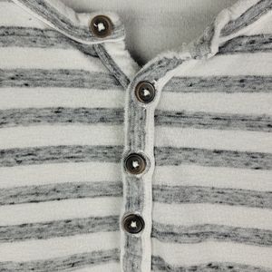 7 for all Mankind Mens Gray White Stripe Long Sleeve Henley Shirt Size Large