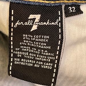 7 for all Mankind Cotton Blend Classic 5 Pocket Style Zip Front Single Button Closure Medium Wash Mid Rise Frayed Hem Cropped Boot Capri Jeans