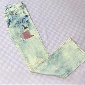 Very unique 7 for all Mankind jeans with the a ripped patch worn look.