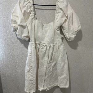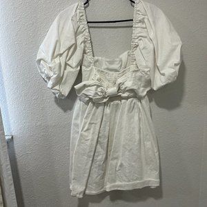 Puff Sleeves with pipped bodice to support structure. Dress can be worn with on or off the shoulders. Extremely flattering fit. Worn 1 time so there is still plenty of life left!