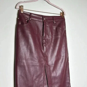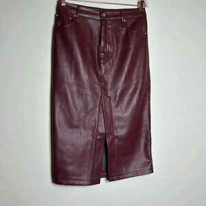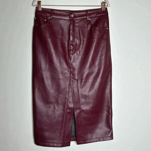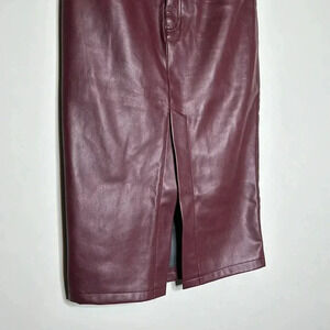 7 for all Mankind Woman's Oxblood Faux Leather Midi Pencil Skirt Size Medium