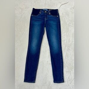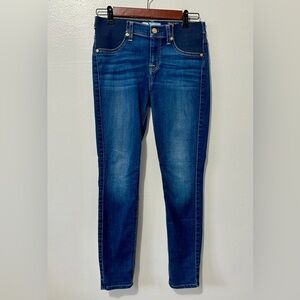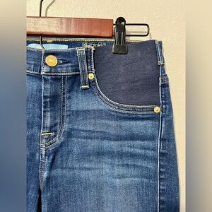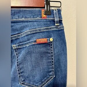 7 for all Mankind b(air) 'the ankle skinny' jean with extra stretch elastic front side panels (great for maternity), medium wash color, zipper and button closure, front and back pockets. These run big in the waist and would best fit a waist size 26/28, please see measurements.