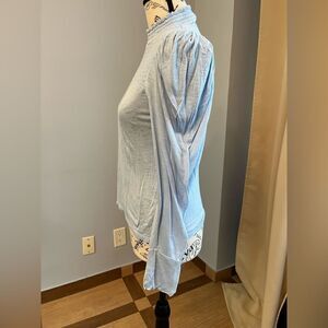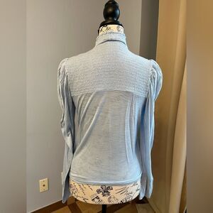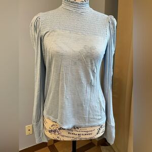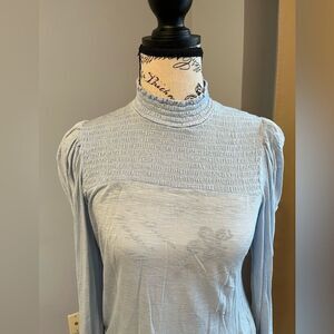7 for all Mankind blue smoked mock neck puff shoulder top