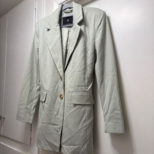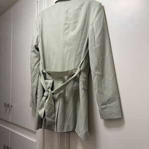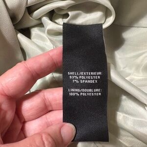 Beautiful blazer! I thought it was a raincoat at first because of the belt! Belt can be tied around waist or tied at the back like in the photo. Fully lined. Two tiny pulls but not noticeable when wearing. Has shoulder pads to give it a little more shape. A little dusty but after a good wash /ironing this will be amazing. Size XS.