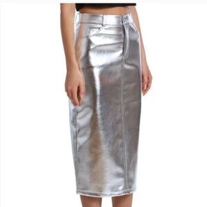 7 for all Mankind, silver faux leather midi skirt, size Medium