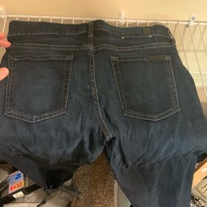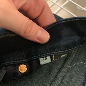 Brand new never worn. Very stylish skinny jeans with a dark wash. Adorable tie accent on bottom of jeans.