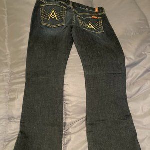 Size 14/32. VERY gently used; worn twice. Flaired for the perfect fit for the casually chic woman on the go. The “A” pocket jean is designed for a comfortable yet stylish fit. 7 For All Mankind “A” pocket jeans are remarkably slimming and universally flattering.
