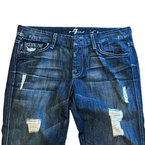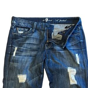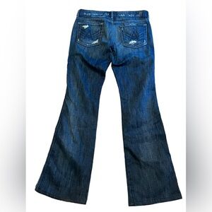 7 for all mankind A pockets distressed dark wash flare jeans Made in the USA
