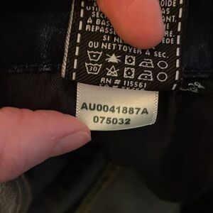 Size 28. 70% cotton, 14% polyester, 14% lyocell, 2% spandex.