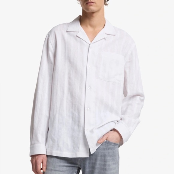 7 for all mankind LONG SLEEVE CAMP SHIRT TEXTURED LINEN BLEND WHITE