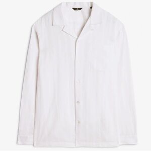 Crafted from a textured cotton-linen blend, our new-season shirt is ideal for summer evenings. It has a camp collar, buttoned front, long sleeves, and a patch pocket at the chest. In white, it looks great with vintage-wash denim and loafers.
