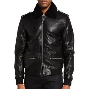 Sold Out Men's Leather Biker Jacket w/ Fur Collar