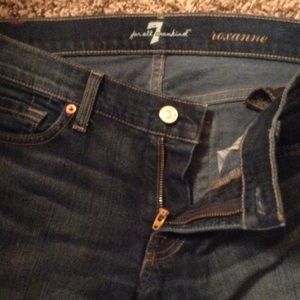 Dark wash Roxanne skinny jeans. They're in EXCELLENT condition other than a broken zipper. Could be easily repaired by a seamstress.