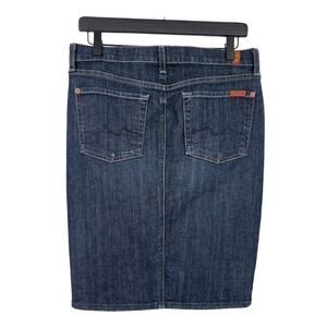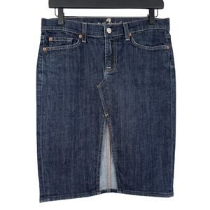 7 for all mankind Roxy Denim Skirt Dark Wash. Size 27. 5 pocket styling. Front slit. Good condition. Length = 21".