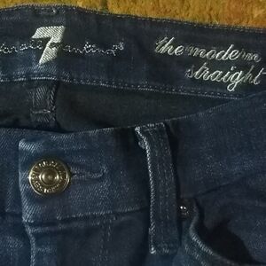 7 for all mankind Dark Wash Modern Straight Leg Jeans with Slight Fading & Whiskering. Excellent Condition. Smoke free home.