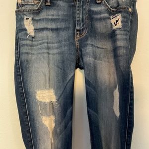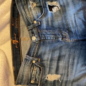 7 for all Mankind, distressed ankle skinny jeans. Distressed front, distressed only a little back pockets.