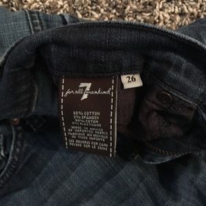7 for all mankind bootcut style jeans. These jeans are in perfect condition minus some wear on the bottom (which is pictured). Size 26, from a pet & smoke free home.