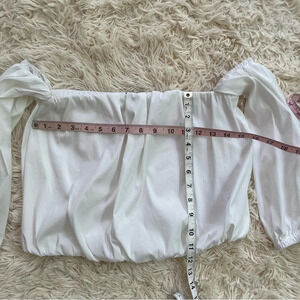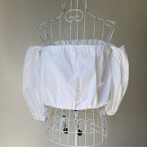 7 for all mankind crop top off shoulders puff 3/4 sleeve cotton white size XS