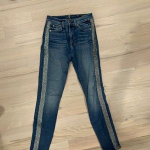 7 FOR ALL MANKIND The High Waist Skinny Silver Stripe Jeans GORGEOUS, Great Fit!!