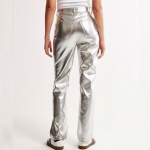 7 for all mankind silver metallic high rise straight leg pants size large nwt size 32, 33, please see chart above and measurements below.