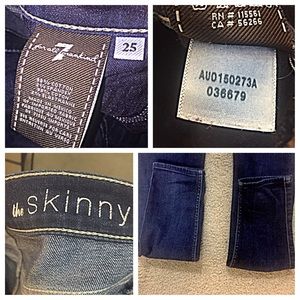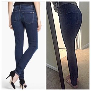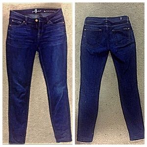 Super chic 7 For All Mankind skinny jeans have fading & whiskering for a worn-in feel. Super comfy, worn a handful of times but too big for me. Got them summer 2014 5-pocket styling. Single-button closure and zip fly. **no trades NONE NEGOTIABLE