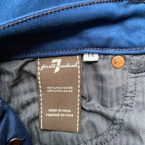 Beautiful micro suede finish five pocket skinny jean styled pants. Color is darker than royal blue, size 14 from 7 for all mankind, mid rise, 100% polyester, excellent condition