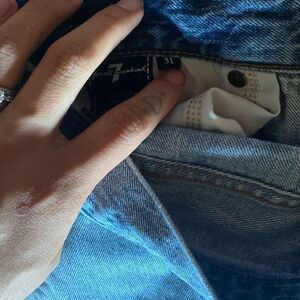Used Mens jeans by 7 for all mankind the slimmy cut. 31. Overall good condition with distressed parts. Please see photos for signs of wear and flaws. Please note sizing can be off from original manufacture sizing due to washing wearing and shrinking